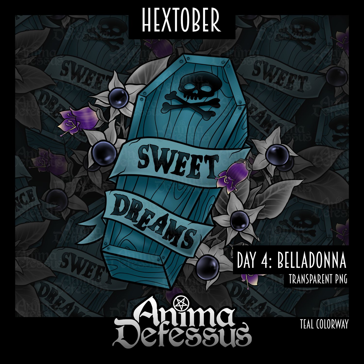 Hextober Day 4: Belladonna PNG (Teal colorway)