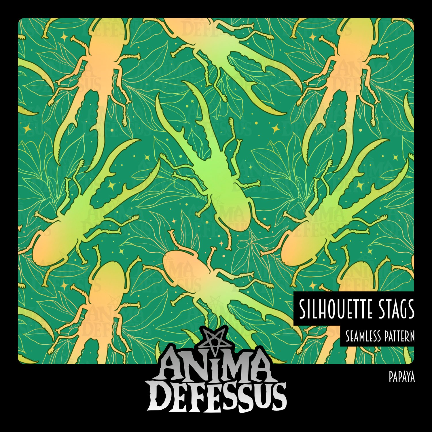 For once the title of the design is pretty much spot on. Some simple stag beetle silhouettes, surrounded by some shrubbery!